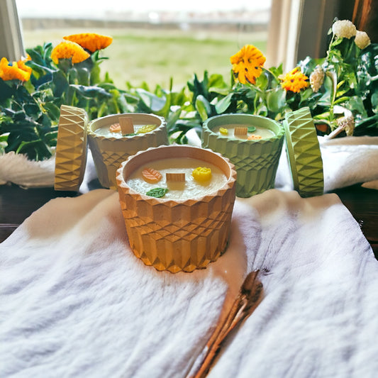 La vela verde, con aroma a coco fresco, te invita a sentir la brisa primaveral mientras paseas por un exuberante bosque tropical. La vela amarilla, con su delicioso aroma a vainilla cálida, evoca la suavidad de los primeros rayos de sol acariciando tu piel. Y la vela anaranjada, con su fragancia alegre de coco y vainilla, captura la energía vibrante de los colores y aromas que anuncian la llegada de la nueva estación.