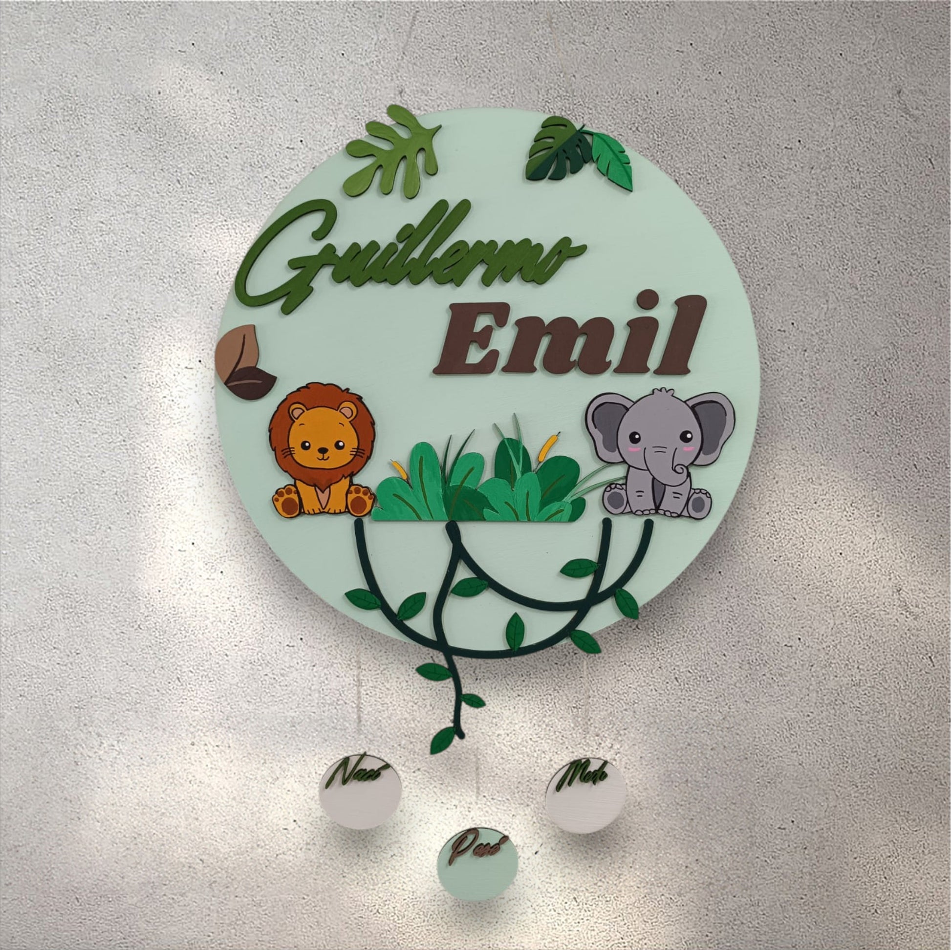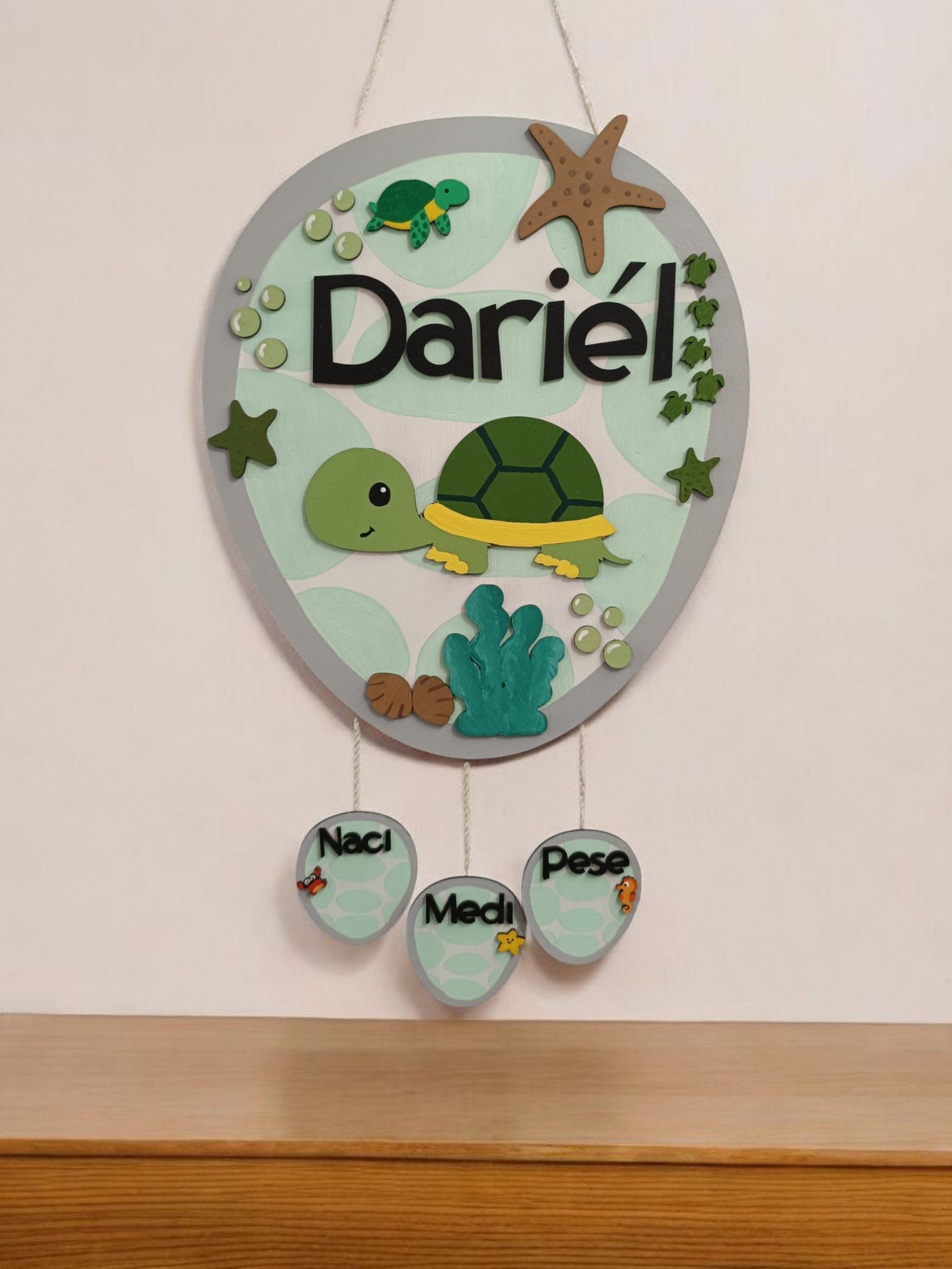 Cuadros personalizados en madera, pintados a mano, con la temática y colores que los padres elijan.