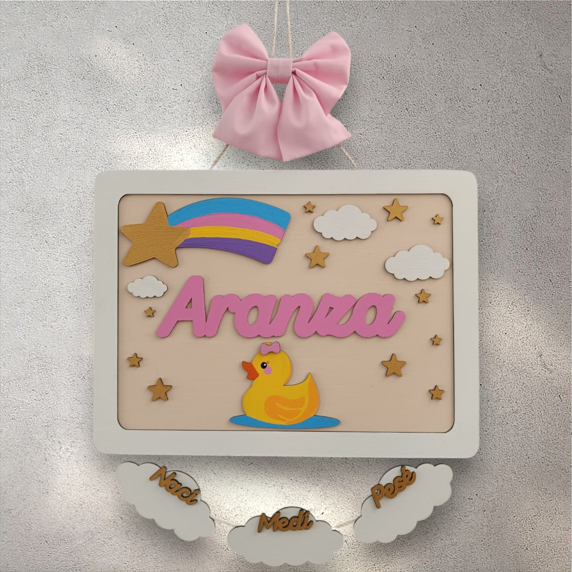 Pack especial "Bienvenida al Mundo": Cuadro + llavero con el nombre del bebé.